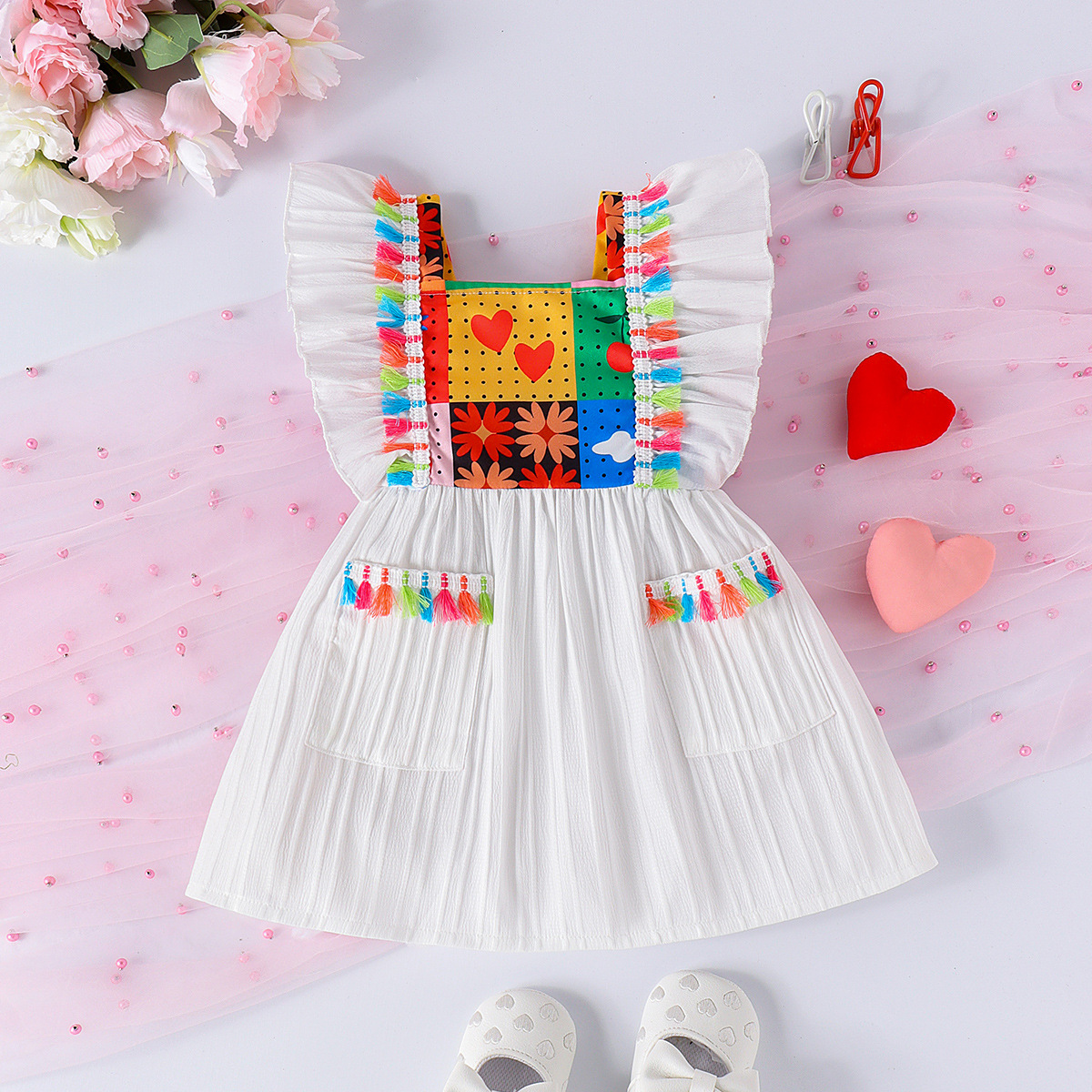 Baby Girl Cute White Fringed Dress