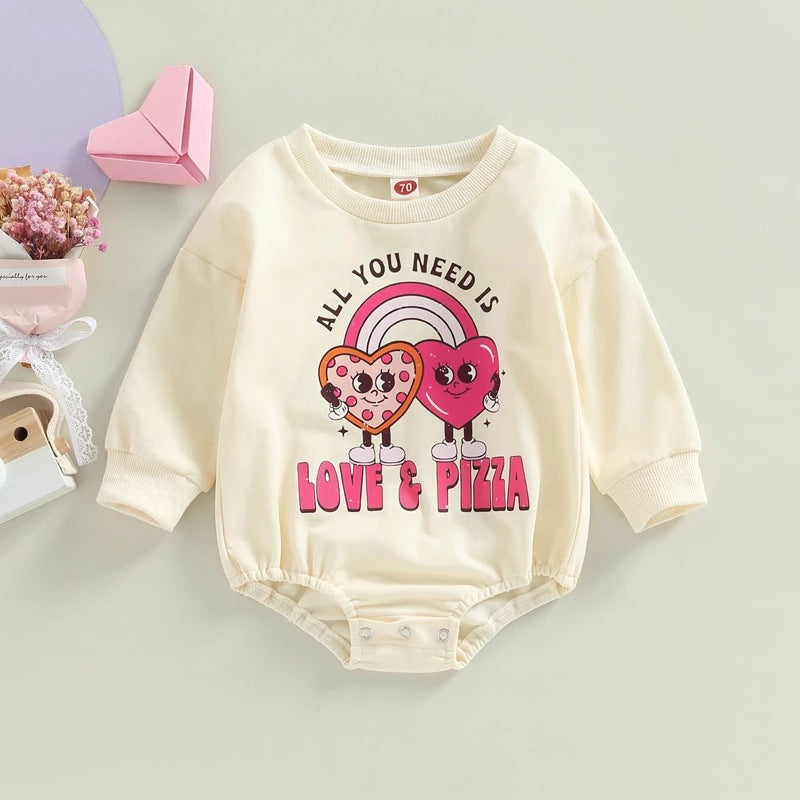 Baby love&pizza print bodysuit