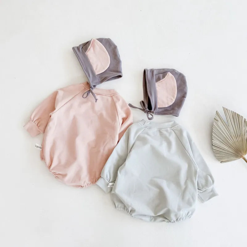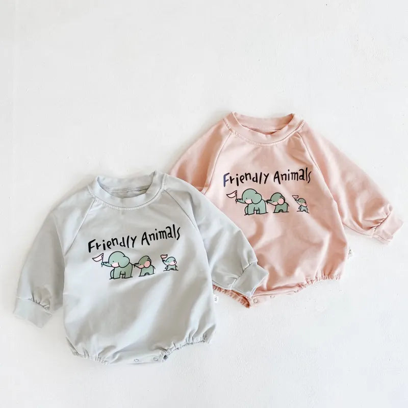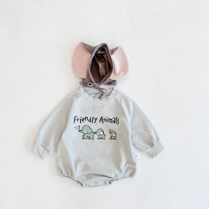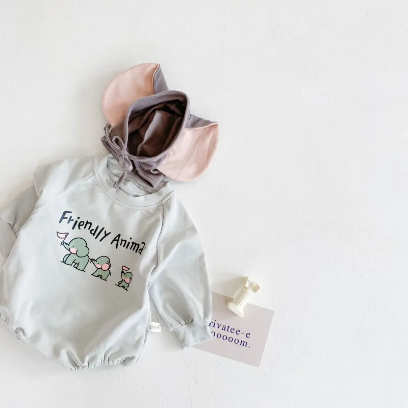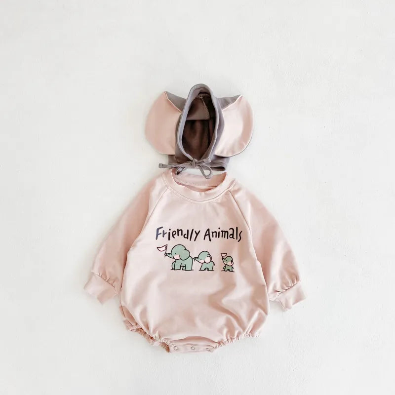 Baby elephant print Bodysuit+hat